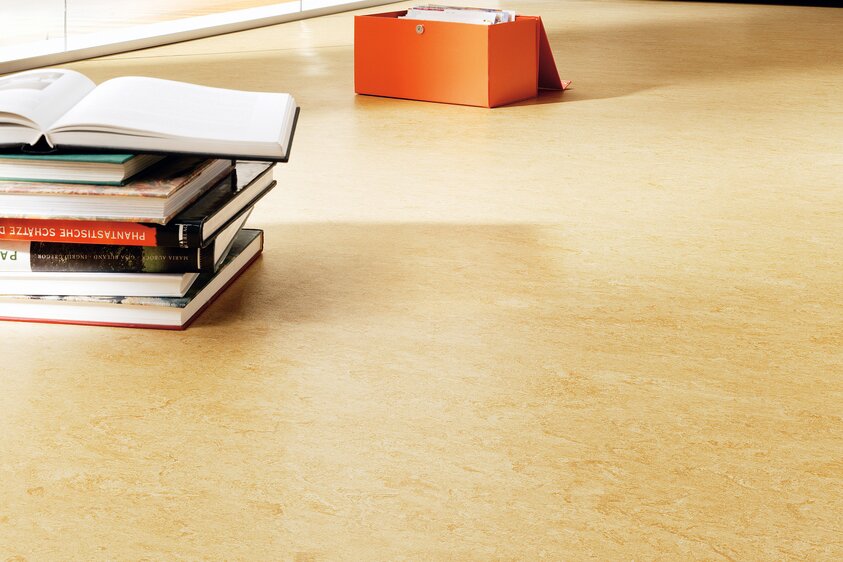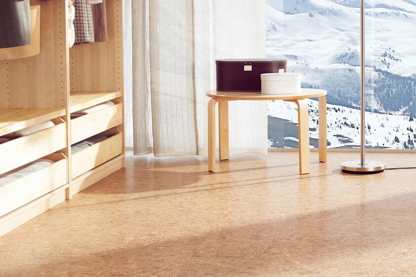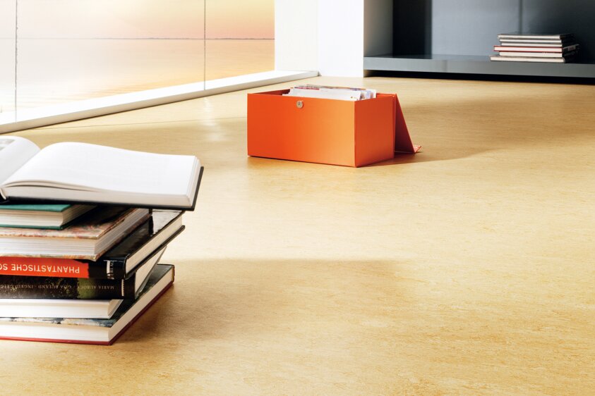 - 100%-ban megújuló természetes anyagokból készült padlóburkolat (parafaőrlemény, gyanta, lenmagolaj, faliszt, mészkő és természetes színezők)