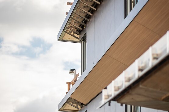 A tervezői anyagválasztás szerencsésen alakult, mert a JAF Holz által forgalmazott Fundermax kompakt lemez az esztétikus megjelenés mellett a legidőtállóbban biztosítja a homlokzat állapotát. Összességében egy nagyon szép feladat volt és büszkék vagyunk rá, hogy részt vehettünk a megvalósításában.„ – emlékszik vissza Tibor.