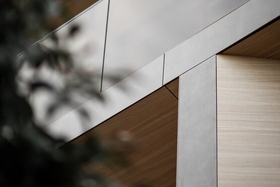 A tervezés során igyekeztünk egy elegáns épületet létrehozni. Egyedi, szoborszerű formát kapott a ház. Az egyedi csomópontok minőségi anyagokat és kézműves kidolgozás kívántak. A homlokzatokon a nagy üvegfelületeken kívül két féle anyag jelenik meg: sötét beton hatás, natúr fa felület. Mindezt egy pezsgősen csillogó, kristályszerű tetővel koronázzuk. A homlokzati felületek meglehetősen bonyolult formavilágúak. Így nagyon szerencsés dolog, hogy rátaláltunk a JAF Holz által forgalmazott Fundermax kompakt lemezre. Ezzel az anyaggal kaptunk egy időtálló, szép felületű táblás burkolatot. A nagy táblák biztosítják, hogy nagyon kevés fugával, felüleletszerűen tudtuk megoldani a részleteket. A kompaktlemez ezen kívül jól szerelhető, a JAF Holz pedig remek szakmai háttér-segítséget nyújt a felmerülő műszaki kérdések esetén.