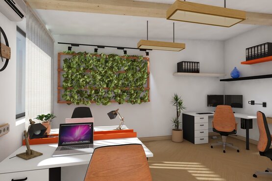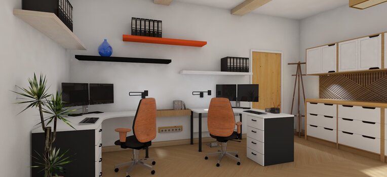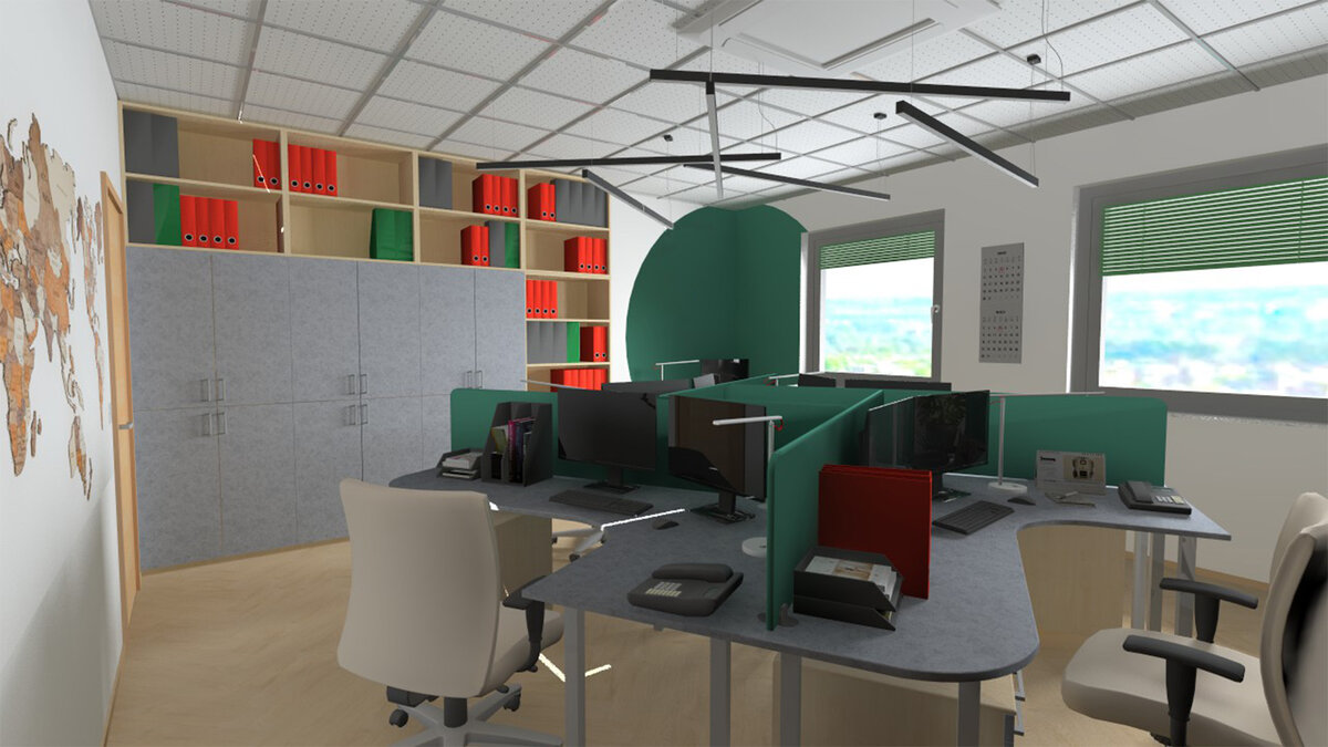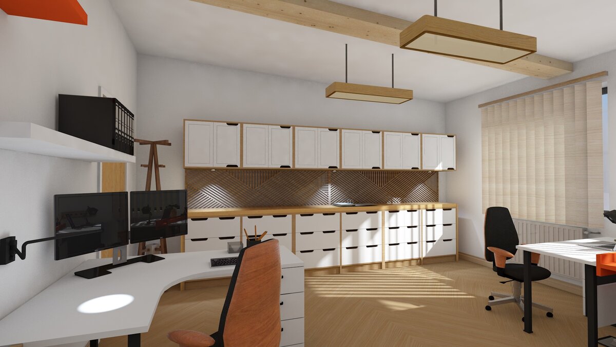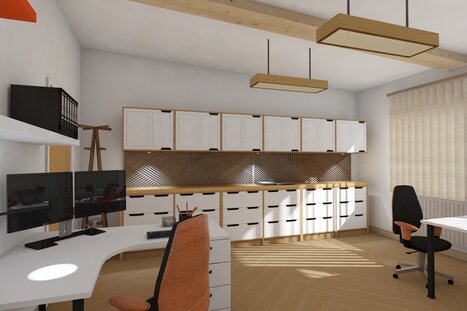 A pályázat kiírásakor nem gondolkoztam, azonnal jelentkeztem. Nagy kihívásnak tartottam, hiszen irodatervezési feladattal még nem találkoztam a tanulmányaim során. A JAF Holz logója nagyon jó inspirációs alapot adott az izgalmas és gördülékeny tervezési folyamathoz. Egy kényelmes, a cég arculatába illeszkedő, átlátható irodát képzeltem, ahol fontos szempont volt, hogy a funkció és a dizájn harmonikusan jelenjen meg a megálmodott térben. A pályázati anyag létrehozásában közreműködött csoporttársam, Harsányi Bianka is.