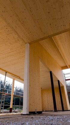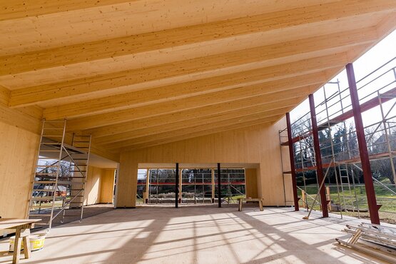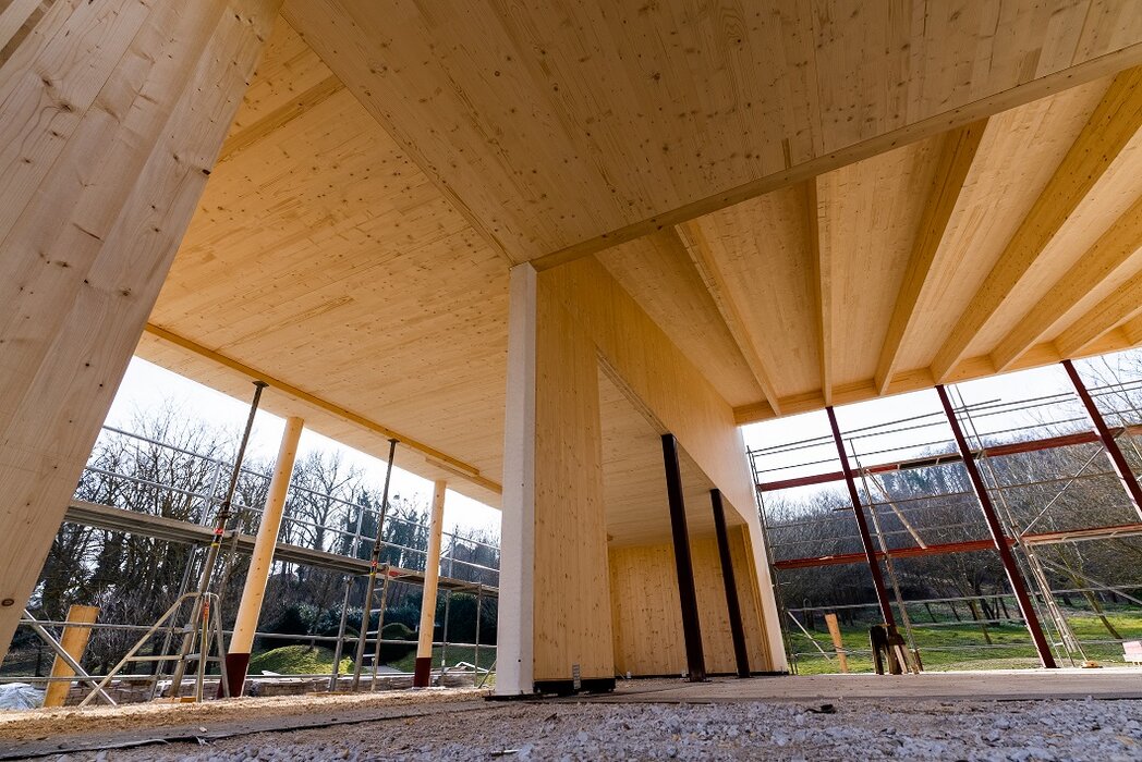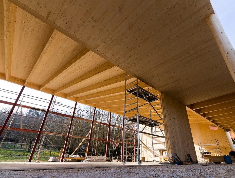 A nagy fesztávú épület teherviselő elemei - úgymint falak, födém és tető - esetében a konstruktív fa tartók, mint mérnöki faszerkezetek dominálnak. Közel 80 m3 CLT/BBS, 25 m3 BSH és a csomópontokban használt nagy teherbírású Pitzl és Rothoblaas kötőelemek átgondolt alkalmazása járul hozzá a szerkezet gazdaságosságához, ugyanakkor biztosítja az építész tervező által elképzelt, letisztult, légies tereket.