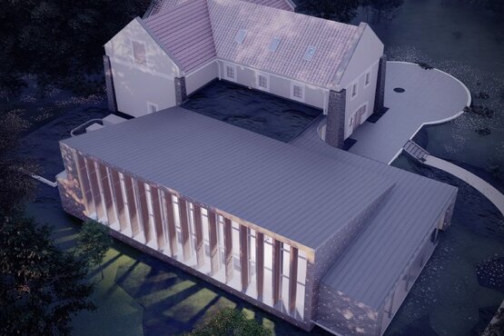 A rendezvényépület bővítése növelheti a szálló vendégeinek nyújtott élmények színvonalát, ugyanakkor a fejlesztéseknek összhangban kell állniuk a történelmi épület jellegével és stílusával is. Ezért a felhasznált anyagoknak és az alkalmazott megoldásoknak igen nagy jelentősége volt.
