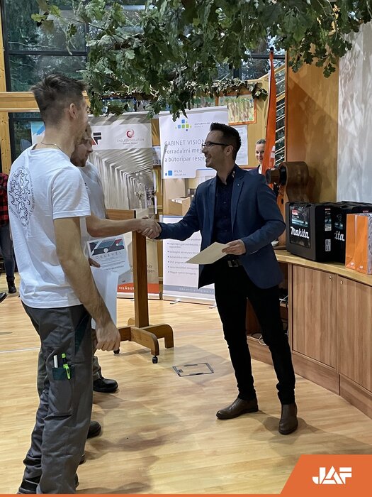 A faipari szakképzés elkötelezett szponzoraként a JAF Holz ezúttal is kiemelt támogatója volt a szakmai versenynek.