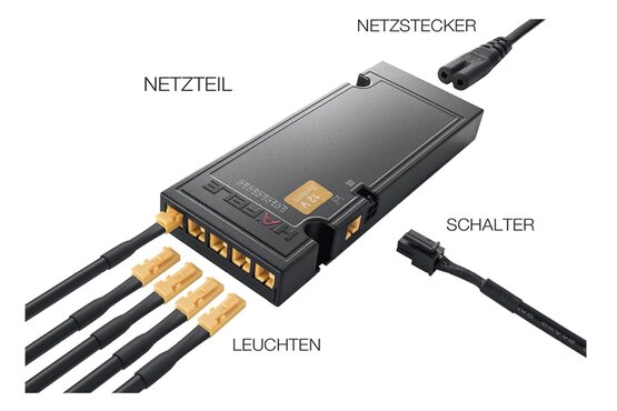Egy trafóról vezérelhetünk akár több kapcsolót is (pl.: nyitásérzékelős kapcsoló a fiókban, de a felső szekrénynél ugyanarról a trafóról egy fényerő-szabályozós LED-et is működtetünk). De akár több trafót is össze tudunk sorolni, ha a LED-ek teljesítménye ezt kívánja. Kombinálható! A LED-szalagot LED-lámpákkal és egy szekrénybe építhető bluetooth-os hangrendszerrel is párosíthatjuk. Van lehetőség beépített USB-töltők elhelyezésére.