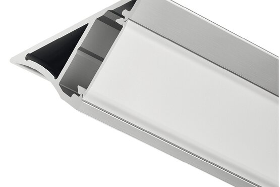 Amennyiben a süllyesztés nem kivitelezhető, vagy más terveink vannak, úgy egy 15°-os külső profilt is választhatunk. Ezt a profilt főleg az akasztórúd feletti lap elülső felébe ajánlott beépíteni. Kellően megvilágítja a ruhákat. Amennyiben a szögletes formákat nem preferálja az ügyfél, mód van egy lágyabb esésű profil alkalmazására. Ez 45°-ban szórja a fényt. Ezzel is kiváló megvilágítást nyerünk.