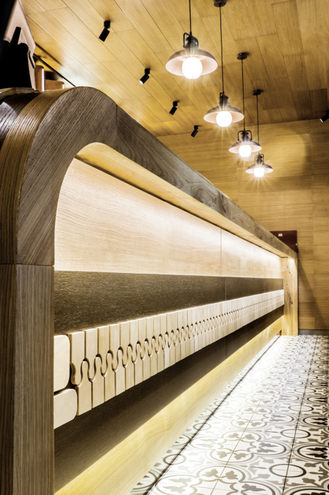 Lenyűgöző belső kialakítás várja a Zero Bar vendégeit. Azzal már csak a pont került fel az i-re, hogy nyírfa rétegelt lemezből készült hatalmas cipzárok díszítik a falakat és a mennyezetet.