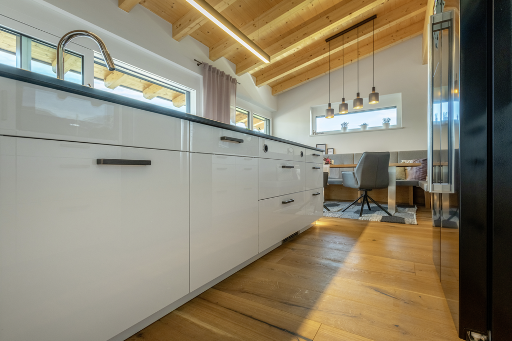 A landhausdiele padló egészen különleges atmoszférát biztosít a helyiségekben. Már belépéskor megragadja a tekintetet: a faanyag természetességét tükrözi. Két tiroli magánház bizonyítja, hogy milyen változatosan és sokoldalúan használhatók a vidéki stílusú padlók. A tulajdonosok a JAF saját márkájú Eurowood padlóla mellett döntöttek.