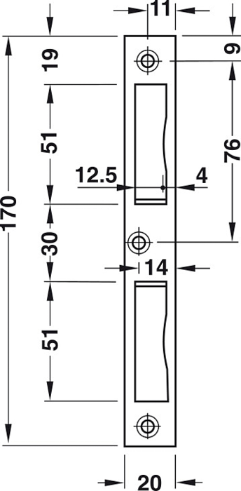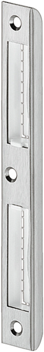 911.39.039 Häfele Acél Beersztős Zárlemez Falcos Ajtókhoz 20x8mm Nikkel-Ezüstszínű Lakkozott