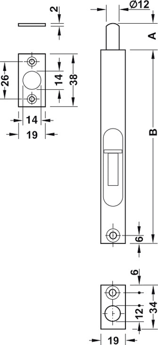 911.62.335 Häfele Rozsdamentes Acél Ajtóélretesz StarTec Egyoldali Tolóreteszeléssel Matt