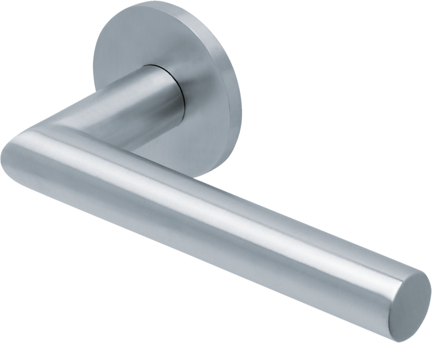 QOLIBRI 1106 "L" DIN3 kilincs, Inox, Körrozettás