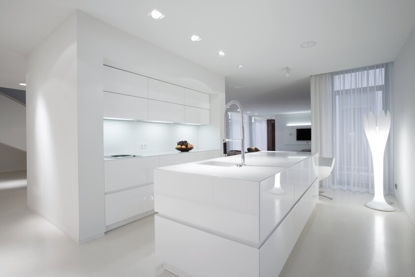 A fehér magos kompakt munkalapok ellenállóak és vékonyak, eleganciájuk szembeötlő, amely megfelel napjaink hűvös és egyenes vonalú építészeti trendjének.