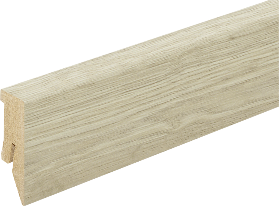 Kaindl gyári szegélyléc. Elegáns kialakítás, kábelelvezetési lehetőség, rögzítése lehetséges ragasztással vagy szegélyléc rögzítőklipsszel.