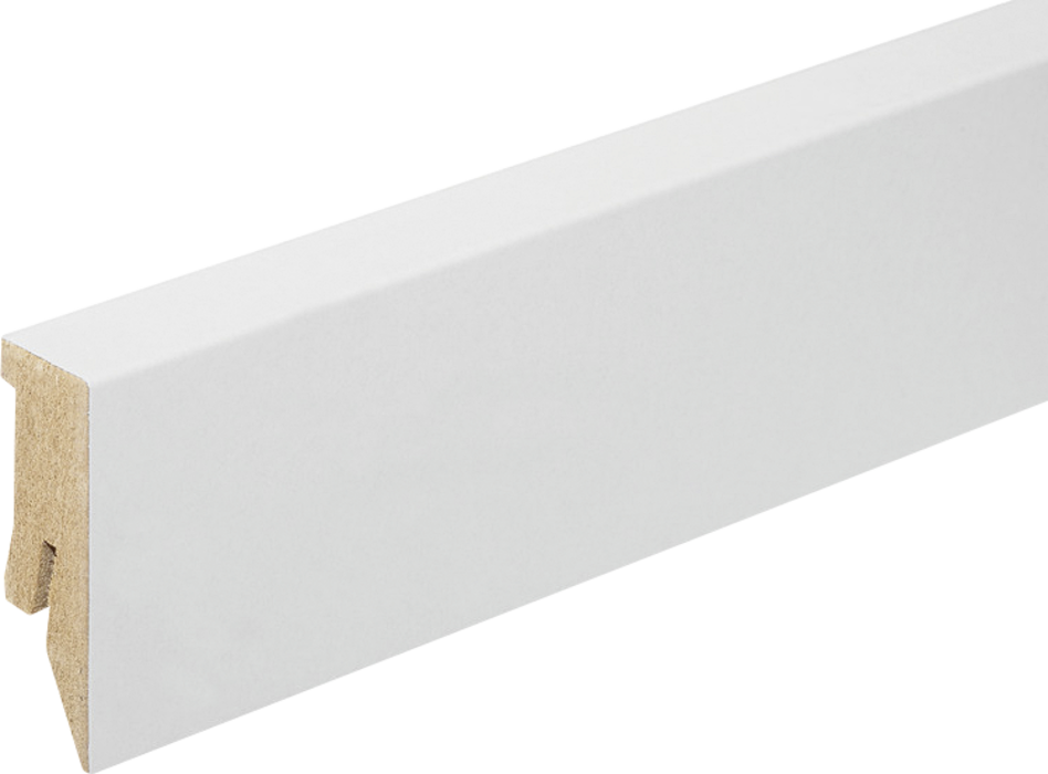 Kaindl gyári szegélyléc. Elegáns kialakítás, kábelelvezetési lehetőség, rögzítése lehetséges ragasztással vagy szegélyléc rögzítőklipsszel.