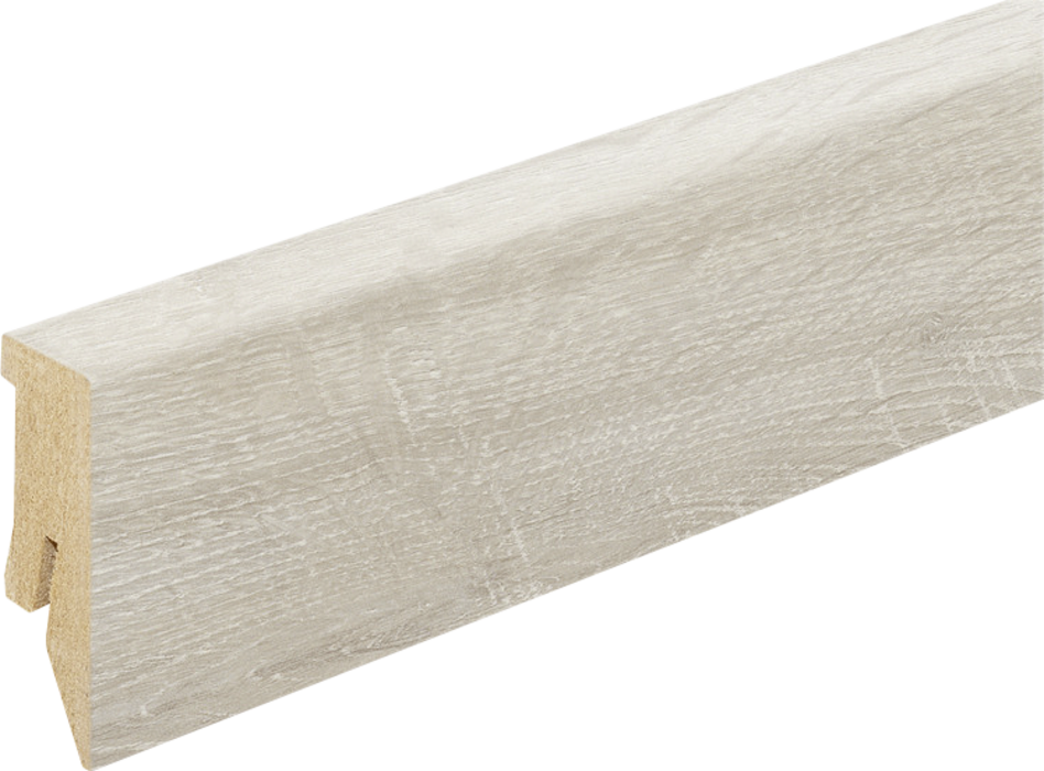 Kaindl gyári szegélyléc. Elegáns kialakítás, kábelelvezetési lehetőség, rögzítése lehetséges ragasztással vagy szegélyléc rögzítőklipsszel.