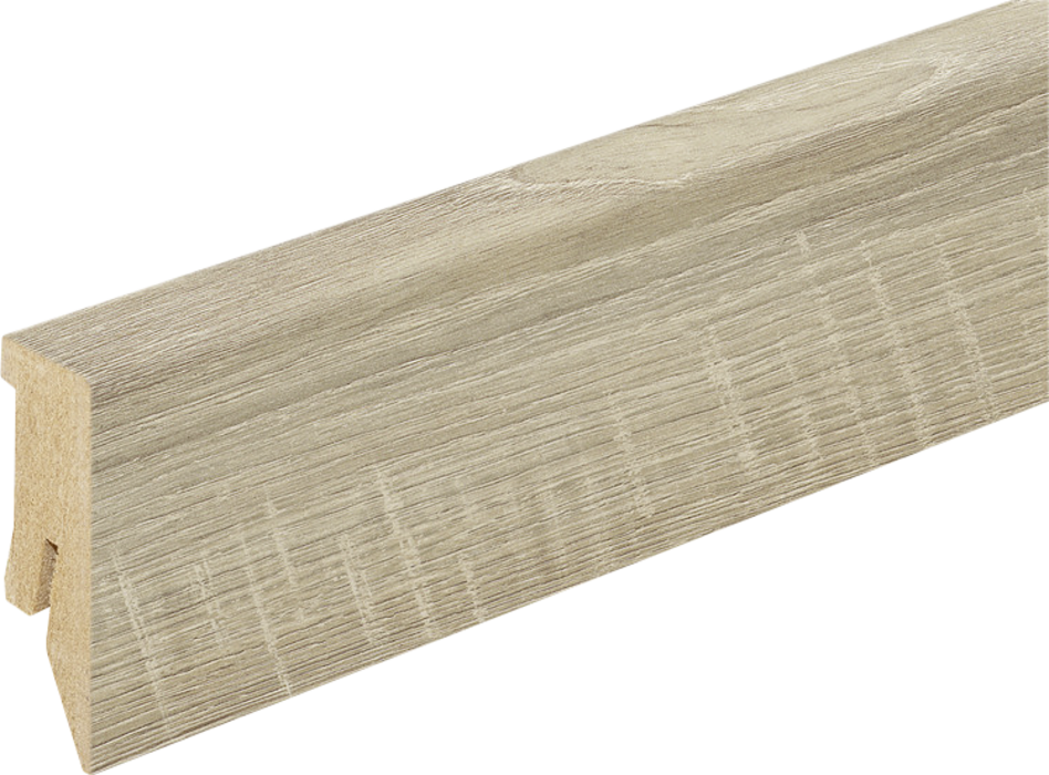 Kaindl gyári szegélyléc. Elegáns kialakítás, kábelelvezetési lehetőség, rögzítése lehetséges ragasztással vagy szegélyléc rögzítőklipsszel.