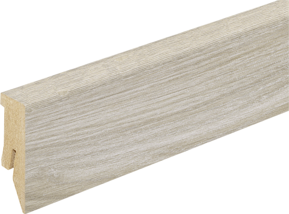Kaindl gyári szegélyléc. Elegáns kialakítás, kábelelvezetési lehetőség, rögzítése lehetséges ragasztással vagy szegélyléc rögzítőklipsszel.
