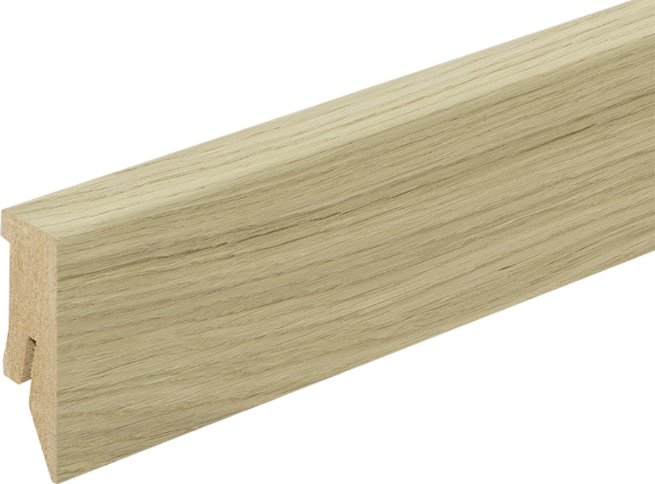 Kaindl gyári szegélyléc. Elegáns kialakítás, kábelelvezetési lehetőség, rögzítése lehetséges ragasztással vagy szegélyléc rögzítőklipsszel.