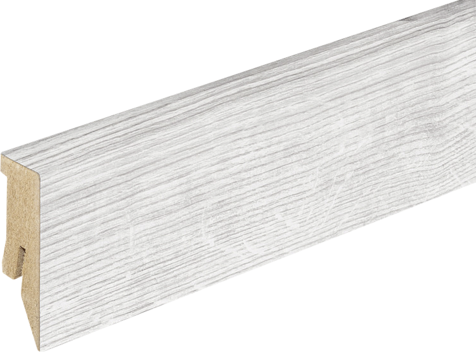 Kaindl gyári szegélyléc. Elegáns kialakítás, kábelelvezetési lehetőség, rögzítése lehetséges ragasztással vagy szegélyléc rögzítőklipsszel.