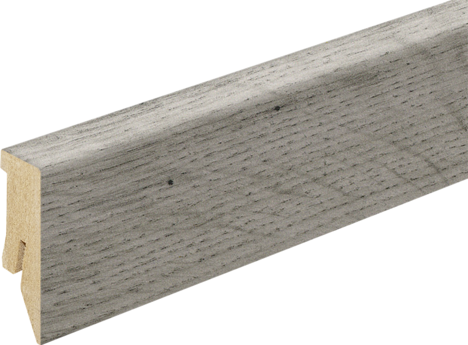Kaindl gyári szegélyléc. Elegáns kialakítás, kábelelvezetési lehetőség, rögzítése lehetséges ragasztással vagy szegélyléc rögzítőklipsszel.