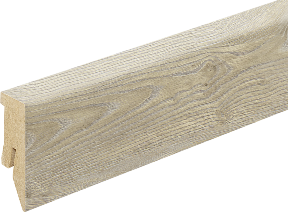 Kaindl gyári szegélyléc. Elegáns kialakítás, kábelelvezetési lehetőség, rögzítése lehetséges ragasztással vagy szegélyléc rögzítőklipsszel.