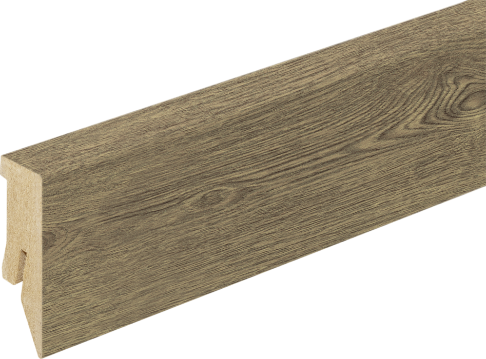 Kaindl gyári szegélyléc. Elegáns kialakítás, kábelelvezetési lehetőség, rögzítése lehetséges ragasztással vagy szegélyléc rögzítőklipsszel.