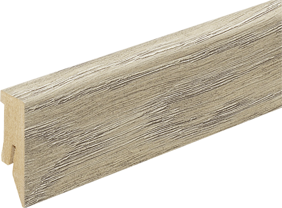 Kaindl gyári szegélyléc. Elegáns kialakítás, kábelelvezetési lehetőség, rögzítése lehetséges ragasztással vagy szegélyléc rögzítőklipsszel.