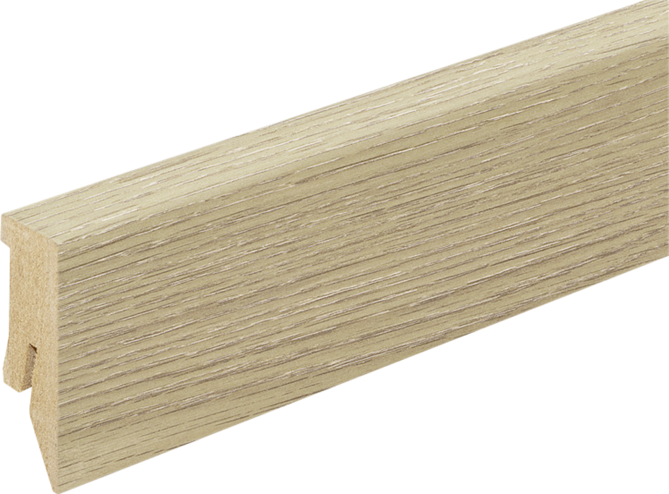 Kaindl gyári szegélyléc. Elegáns kialakítás, kábelelvezetési lehetőség, rögzítése lehetséges ragasztással vagy szegélyléc rögzítőklipsszel.