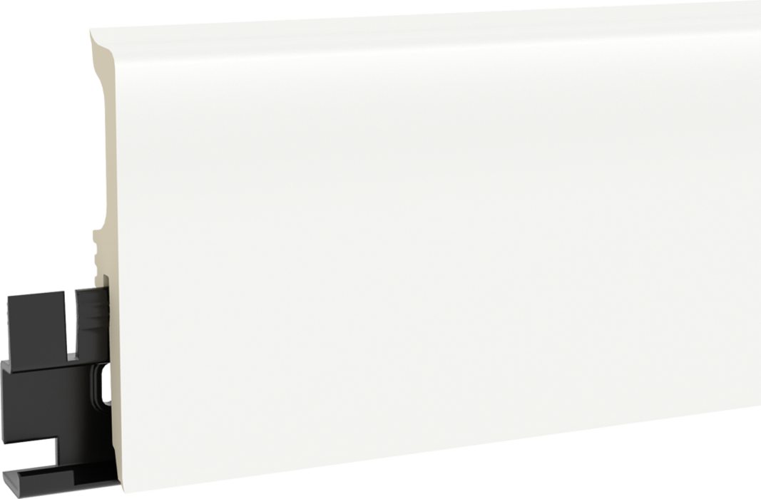 Vízálló műanyag szegélyléc, melynek rögzítése történhet ragasztva, vagy szegélyléc-rögzítő klipsszel.
