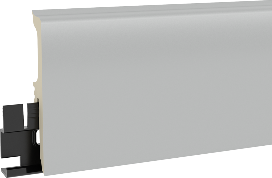 Vízálló műanyag szegélyléc, melynek rögzítése történhet ragasztva, vagy szegélyléc-rögzítő klipsszel.