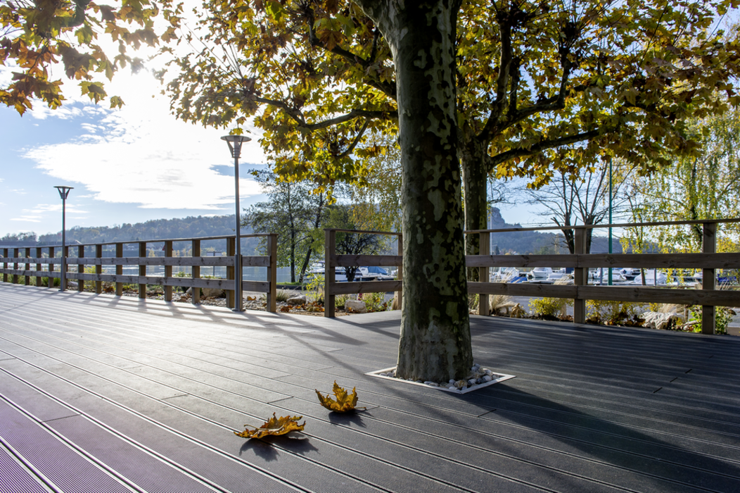 UPM Profi Deck számos friss színt kínál. A strapabíró felületnek köszönhetően szín- és alaktartó, így ideális kerti teraszokhoz, valamint éttermek, medencék és hajókikötők burkolására. A mindkét oldalán bordázott teraszburkolat évek múltán is nagyszerűen néz ki, míg a karbantartására minimális figyelmet kell fordítani. Az alapanyag teljesen ligninmentes. A lignin a fának az az alkotóeleme, mely a szürkülésért felelős. Az UPM Profi Deck felülete nem porózus, hanem zárt, így a különböző folyadékok, mint a bor és az olaj könnyen letörölhetők róla.