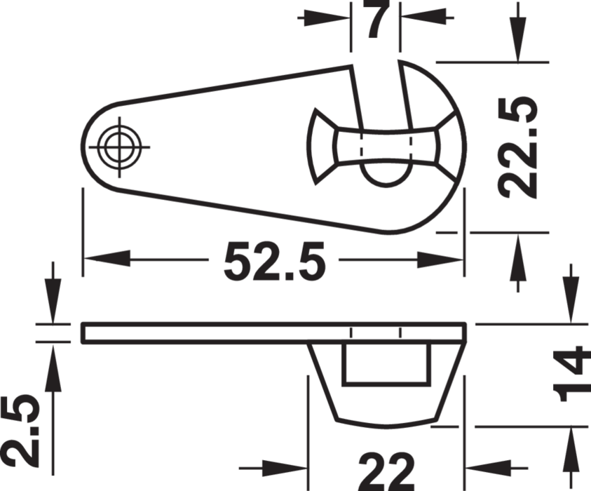 642.51.230 Häfele Zárkampó Csukható Vasalat Keretes Asztalokhoz Hossz 53mm