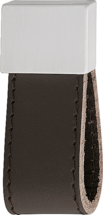 110.76.011 Häfele Bőr Bútorfogantyú Sötétbarna Cinköntvény Talppal Rozsdamnetes Acél Színben 30x66mm
