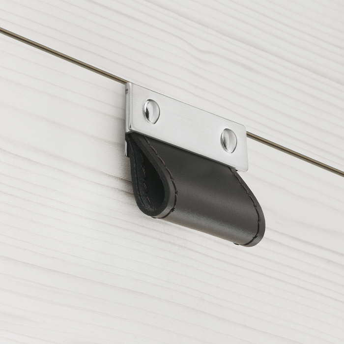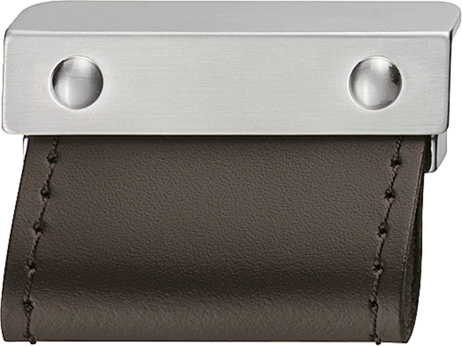 110.76.030 Häfele Bőr Bútorfogantyú Sötétbarna Cinköntvény Talppal Rozsdamnetes Acél Színben 60x37mm