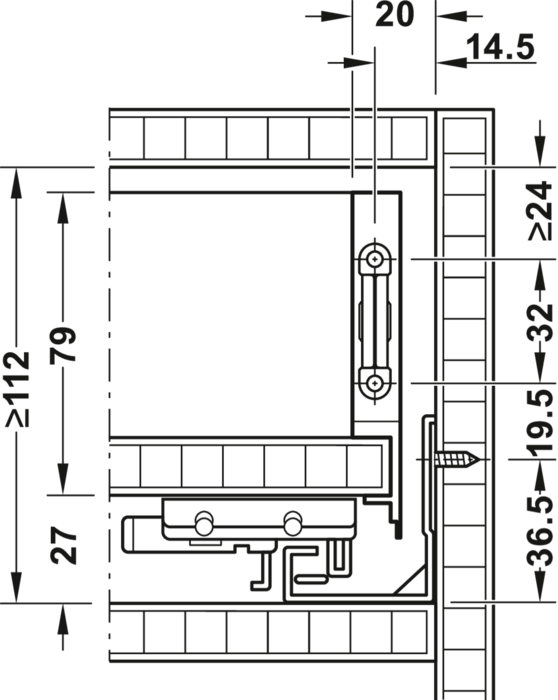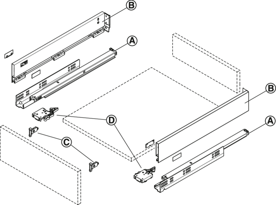 Teljes kihúzású, beépített csillapítással és önzárással, beépített hátlaprögzítővel.