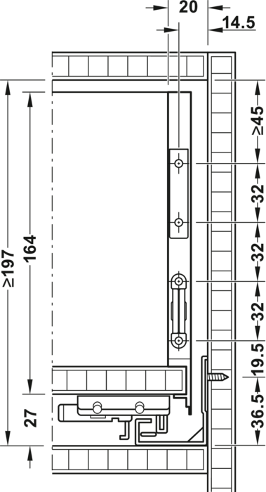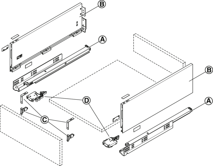 Teljes kihúzású, beépített csillapítással és önzárással, beépített hátlaprögzítővel.
