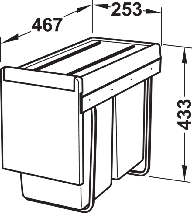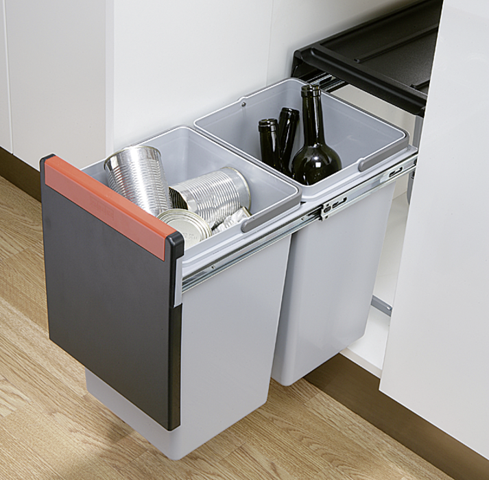 502.76.508 Häfele Szeméttároló Nyílóajtók Mögé Történő Szereléssel 2x15 Liter Fekete