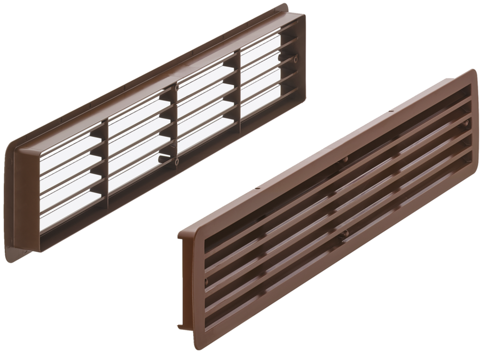 959.10.004 Häfele Műanyag Szellőzőrács StarTec Szögletes Kétrészes Lamellával 457x92mm, Dió
