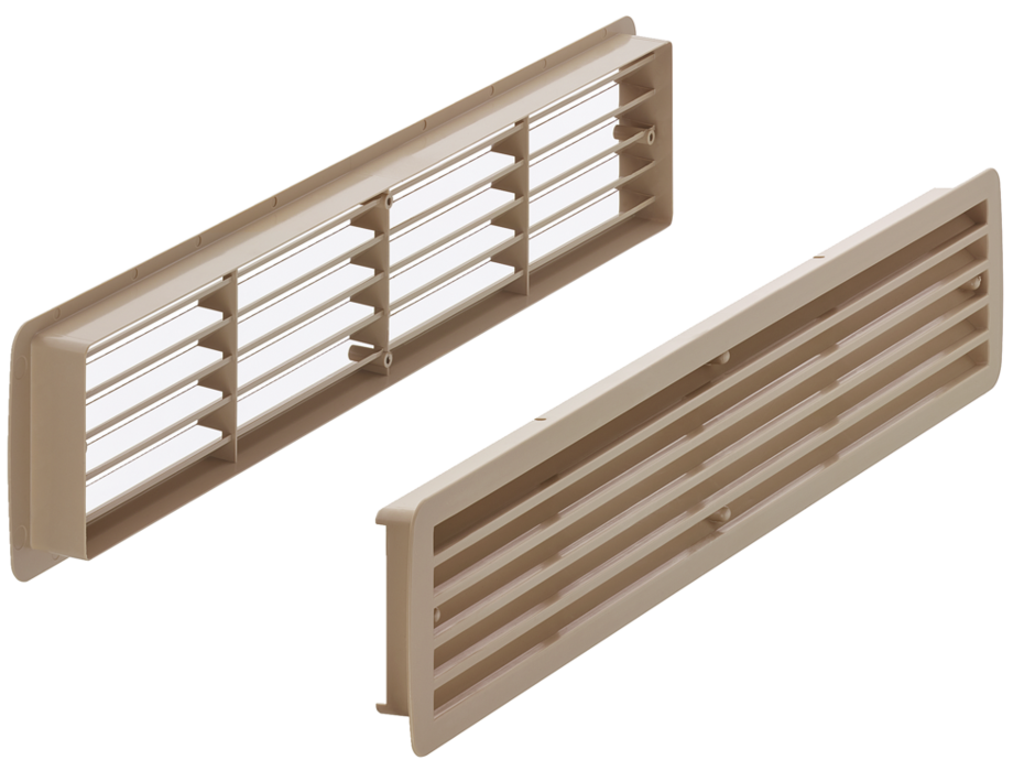 959.10.009 Häfele Műanyag Szellőzőrács StarTec Szögletes Kétrészes Lamellával 457x92mm, Juhar