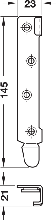 271.05.915 Häfele Ágyvasalat Hajlított Akasztórésszel és Záróelemmel Magasság 145mm Horganyzott