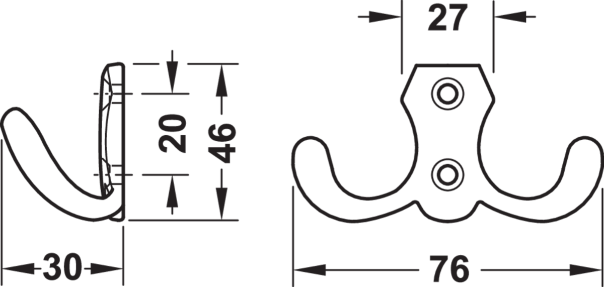 885.05.151 Häfele Ciknköntvény Gardróbfogas Barna Szálcsiszolt 76x30x46mm