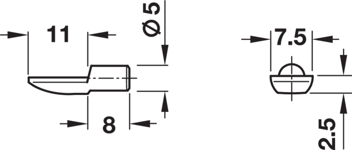 282.04.711 Häfele Acél Polctartó Akasztó Orr Nélkül Fapochoz 5mm-es Furatba Helyezhető Teherbírás 80kg Nikkelezett