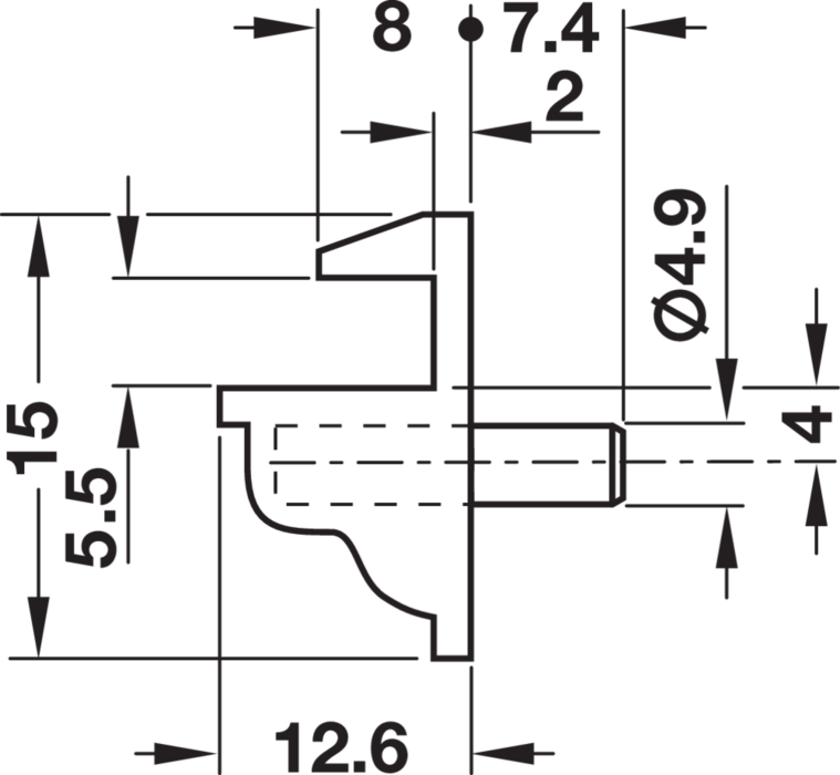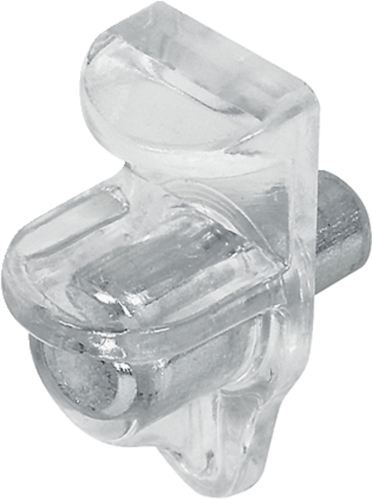 282.12.435 Häfele Műanyag Polctartók Acélstifttel 5mm Vastag Üvegpolcokhoz Kiemelés Elleni és Befogó Biztosítással 5mm-es Furatba Behelyezhető Átlátszó