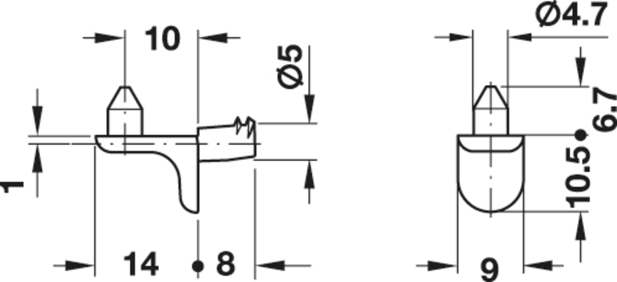 282.24.720 Häfele Cinköntvény Polctartók Fapolcokhoz 5mm-es Furatba Helyezhető Bedugó Csappal Teherbírás 125kg Nikkelezett