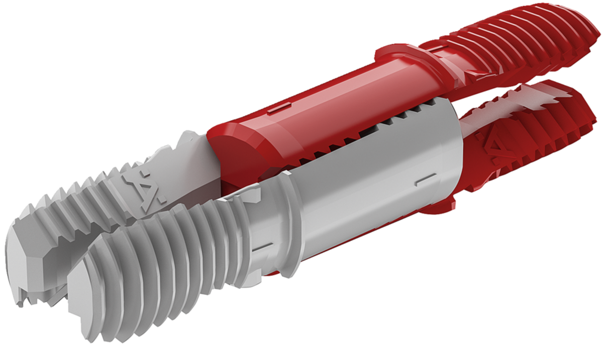 A két lemezrész összetolásával a két összehúzó a furatban tágul.