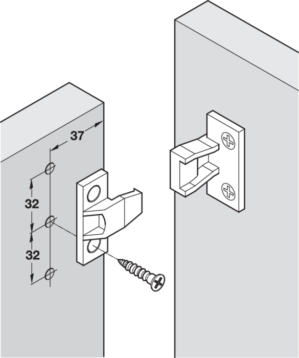 262.50.368 Häfele Rácsúsztatható panelrögzítő Vasalat Keku