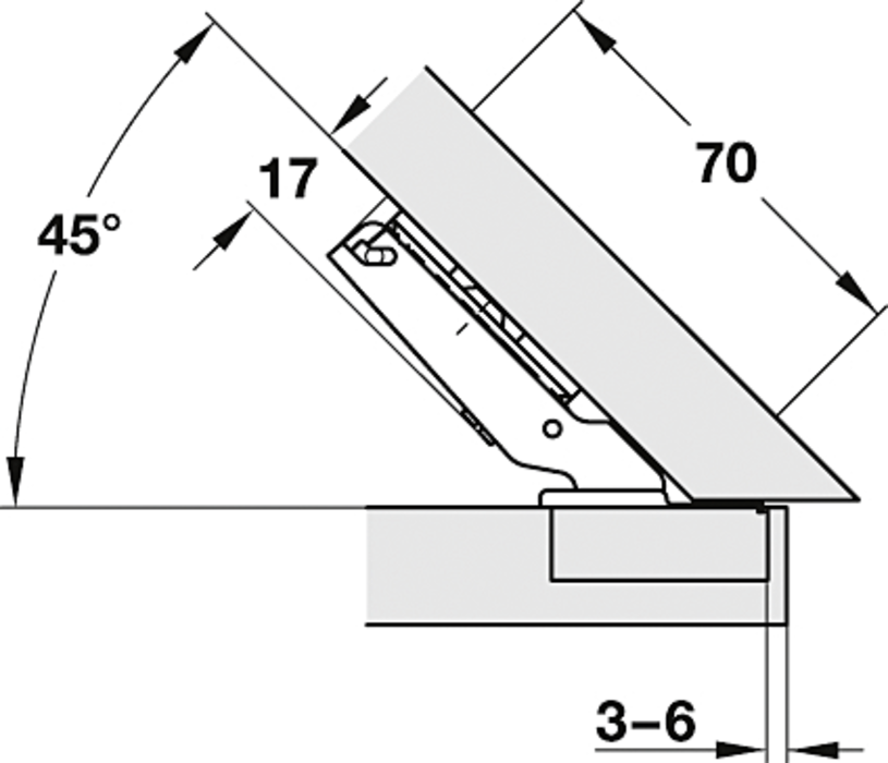 329.09.600 Häfele Kivetőpánt Duomatic 120° -45°-Sarokalkalmazáshoz Faajtókhoz Beépített Csillapítás Nélkül Rácsúsztatásos vagy Gyorsszereléssel Csavarozható Fúráskép 48/6