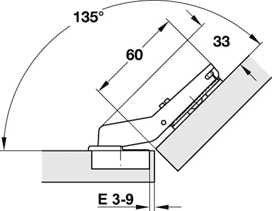 329.96.605 Häfele Kivetőpánt Duomatic 94° 45°-Sarokalkalmazáshoz Faajtókhoz Beépített Csillapítás Nélkül Rácsúsztatásos vagy Gyorsszereléssel Csavarozható Fúráskép 48/6