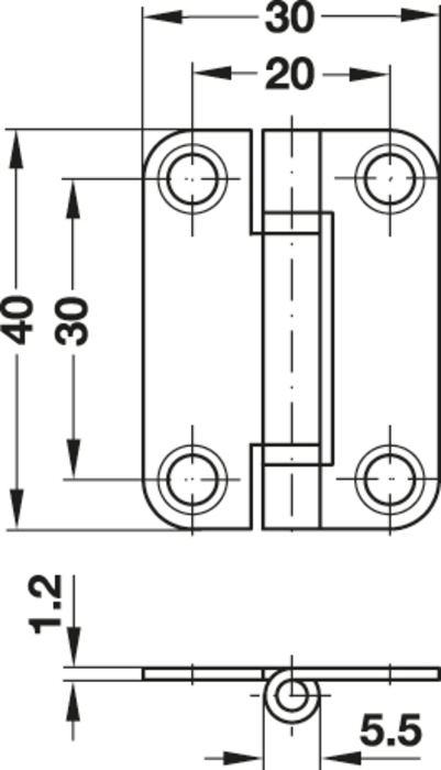 354.14.709 Häfele Pántok Harmónika Tolóajtóhoz Hajlás A, Egyenes Csavarozható 40x30mm Nikkelezett