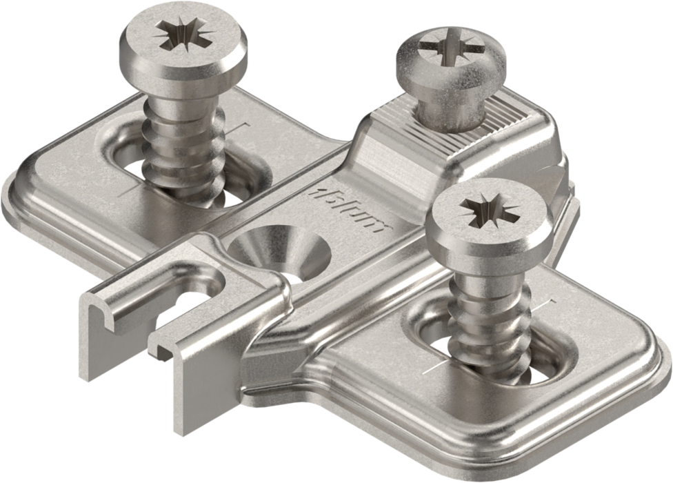 Blum 193L8100 MODUL Kereszt Szerelőtalp 37/32 mm, Acél, Előszerelt Eurocsavarral Szerelhető, Magasságállítás Hosszlyukfuraton, Magasítás 0mm, Nikkelezett