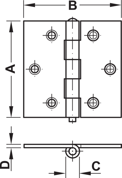 354.03.750 Häfele Hengerelt Pánt Négyzetalakú Szegecselt Csappal 80x80mm